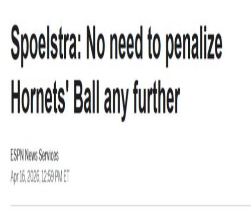 热火刚刚以126比127客场不敌黄蜂、无缘季后赛,赛后球队于今日召开赛季总结会议。斯波斯特拉在会上表示:“我认为没必要再对他进行后续追加处罚,那样并不合理。”在那场焦点对决中,阿德巴约因摔倒时被鲍尔拉扯脚踝受伤,提前长时间离场。